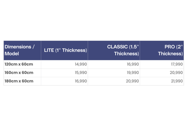 All prices are the same except (Narra) Tabletop